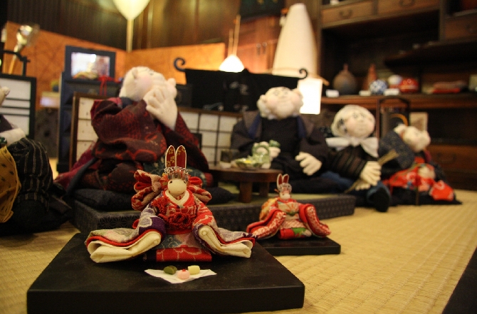 ランプをはじめ、作家さんによるうさぎ人形やほのぼの人形など