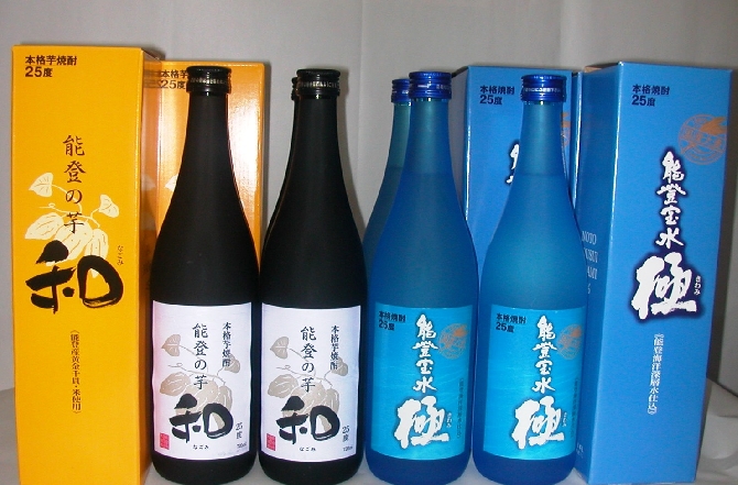 能登の芋焼酎「和なごみ」 能登宝水「極きわみ」 各1380円