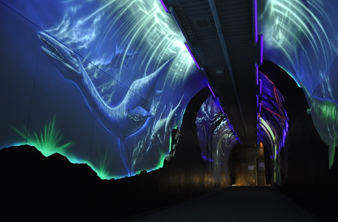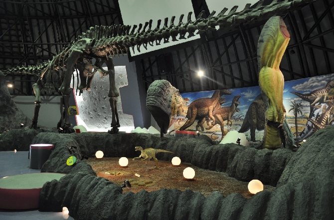 恐竜化石を中心に、恐竜の生きた時代をジオラマ・映像で再現しています。