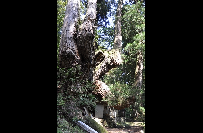 根元から幹が何本にも分かれていることから“子持ち杉”と呼ばれています。