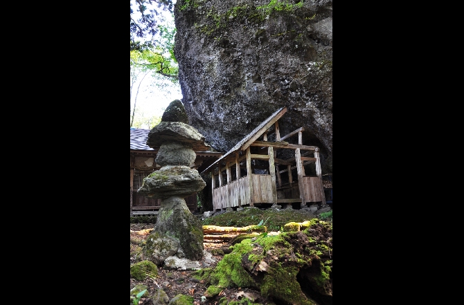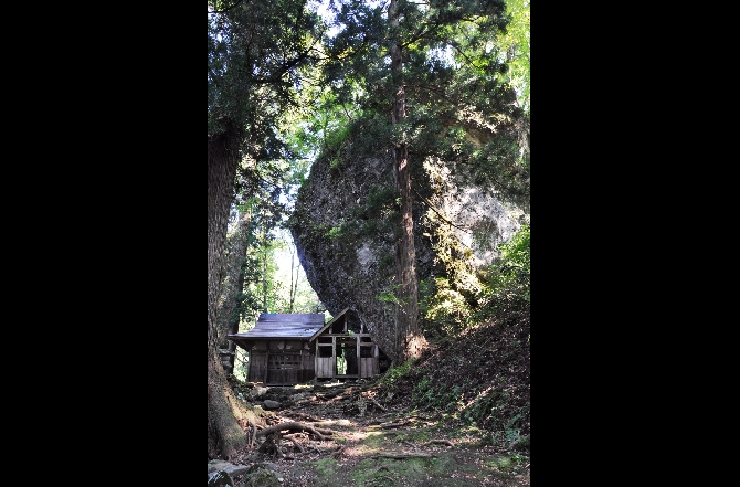 昔、神様のお告げがあり、岩塊の側に神社を移したそうです。