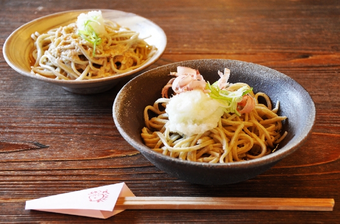 自家製粉の十割そば。麺は細打ち・太打ちを選べます。