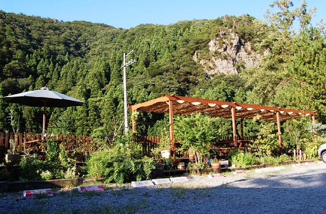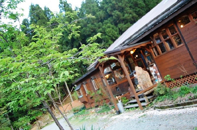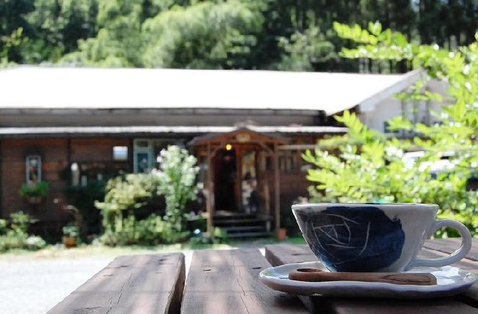 元廃校舎を修復した木の香りただよう店内は、スイーツ・フード・コーヒーと共に
