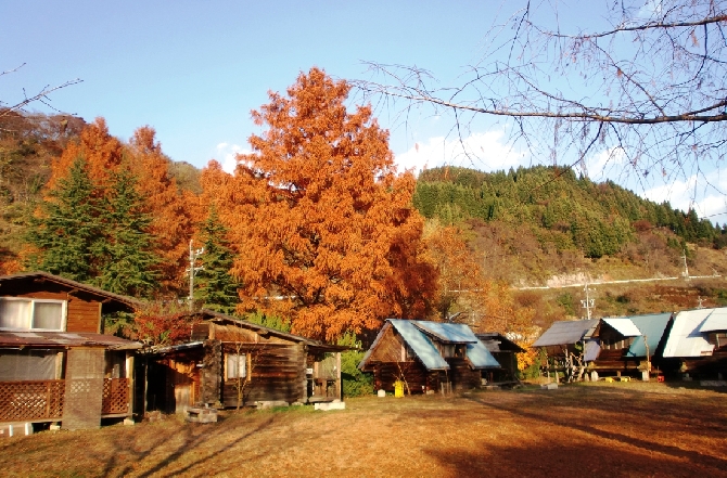 フリー・オートサイトの他、ログハウスやバンガローでもくつろげる味わい深いキャンプ場。