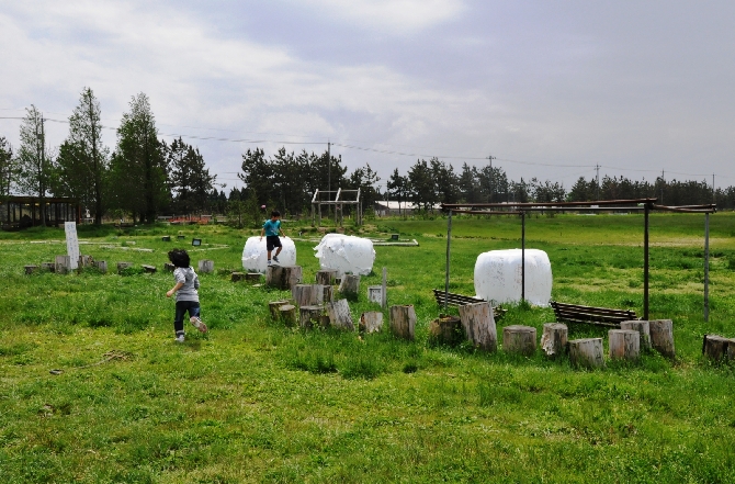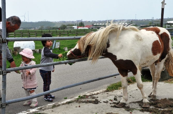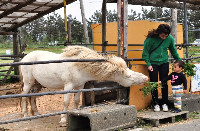 広場にはポニーやうさぎがいるので、ふれあい体験もできます。