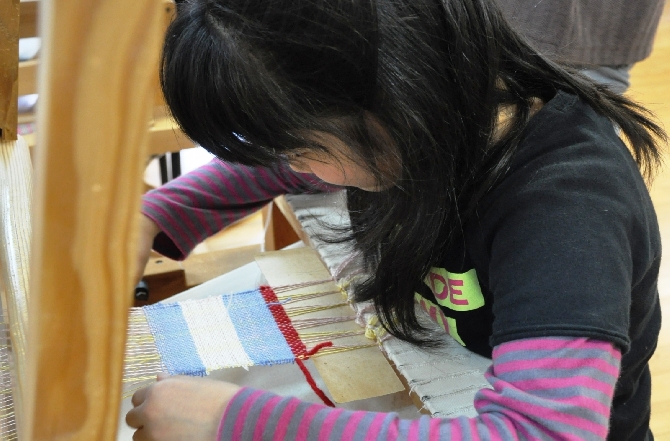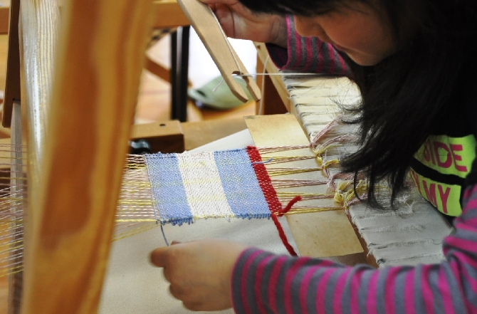 機織り体験は、丁寧に指導してくれるので初めてでも簡単にできます。