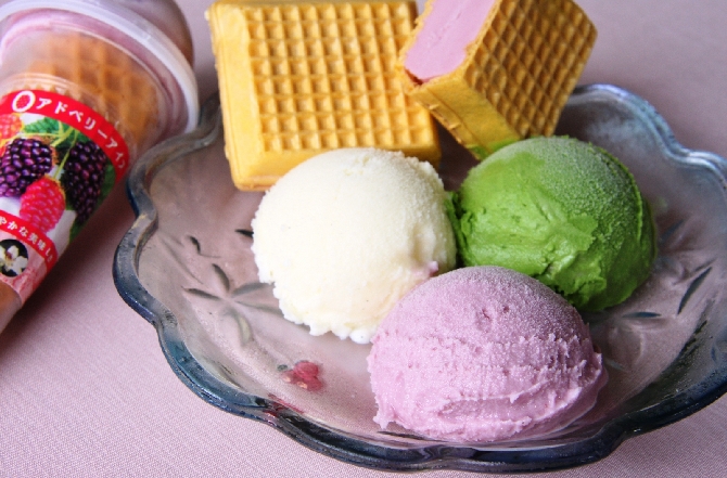 アイスやジェラート、サイダー、ゴーフレット、飴などのアドベリー商品を