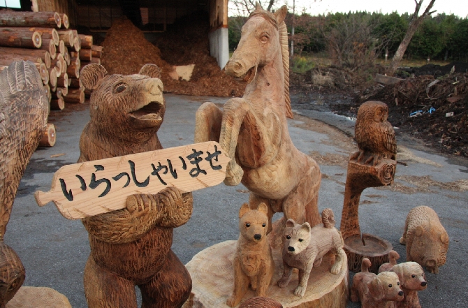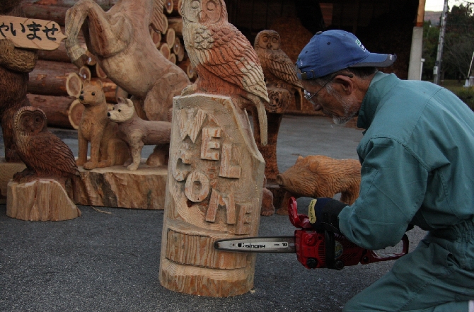 荒々しく、大胆で豪快なチェンソーアート。見ていても痛快です。また細やかな細工も可能で、作品の販売もあり。