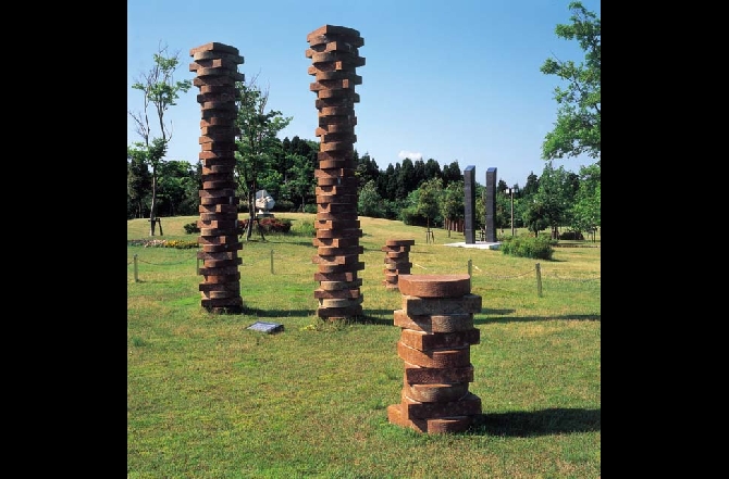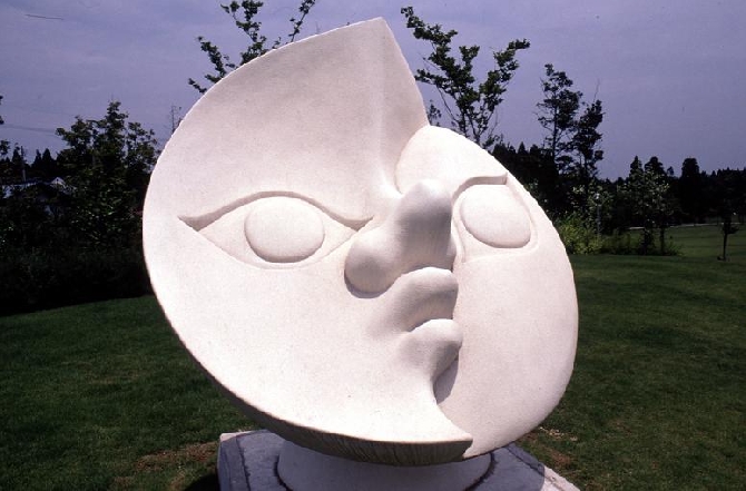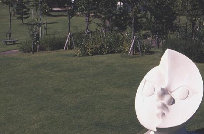 広大な芝生広場や、岡本太郎のモニュメント「月の顔」などの