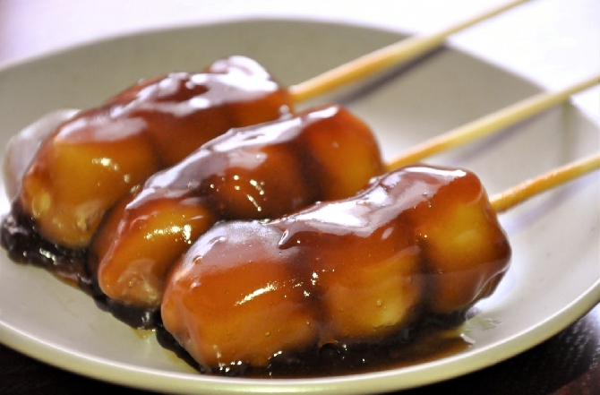 「黒みつ団子」は黒糖の濃厚タレがたっぷりはいった一品。