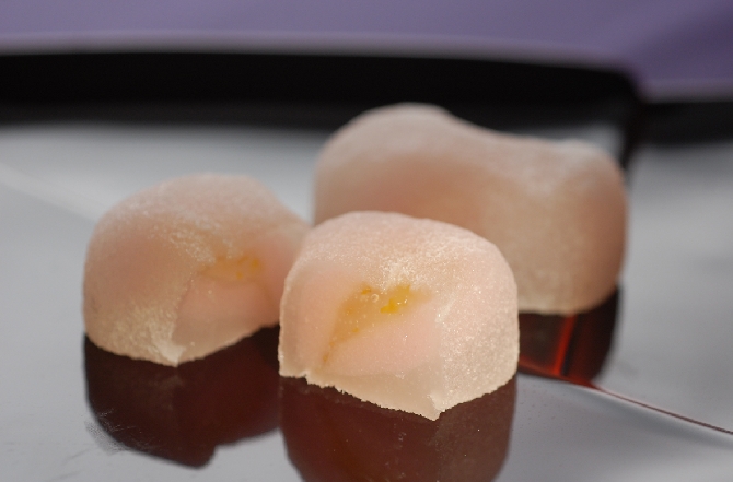柚子蜜を羽二重餅と葛で包み、さらに上南粉をまぶした村中甘泉堂渾身の一品。