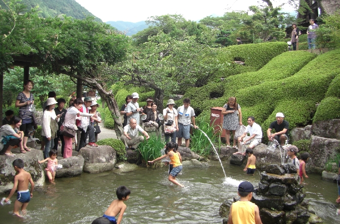 温泉街の東、弘法山のなだらかな丘陵地に白川郷等の合掌家屋を移築し集落を再現。