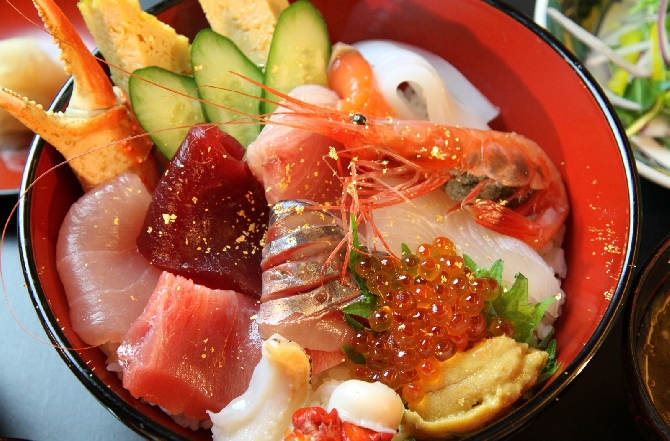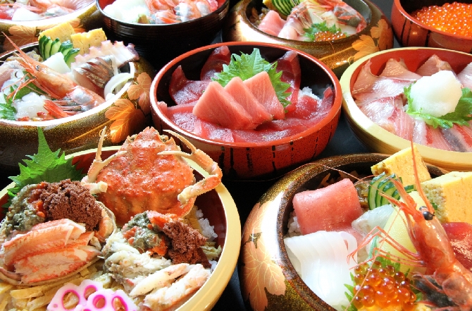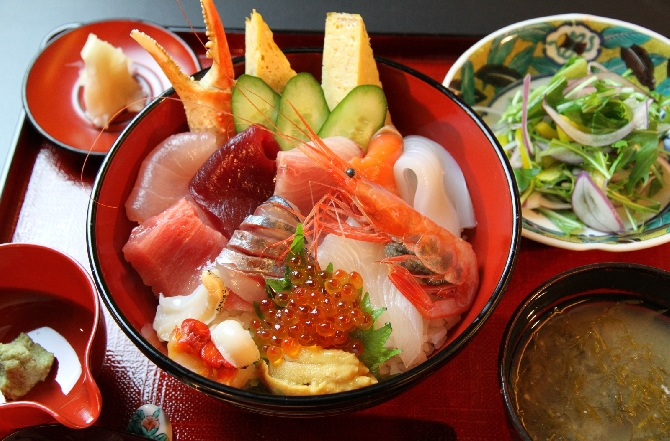 能登の旬のうまいもんがぎっしり入った丼ものは鮮度抜群。