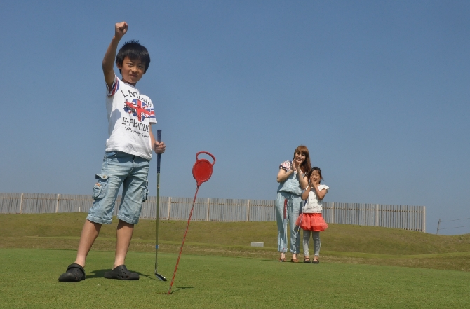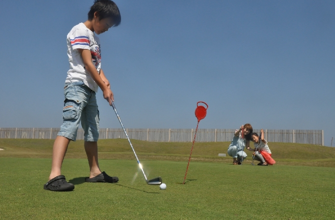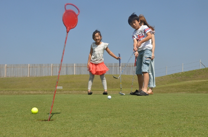 潮風に吹かれながら、みんなでキャンプやバーベキュー、ファミリーゴルフ(ショートコース)を