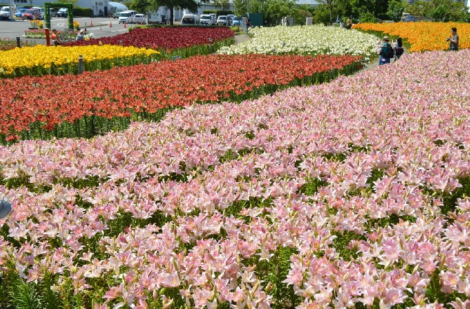 毎年6月にはゆりフェスタが開催され、15万輪のゆりの花が咲き誇ります。