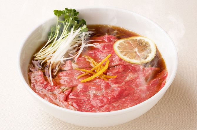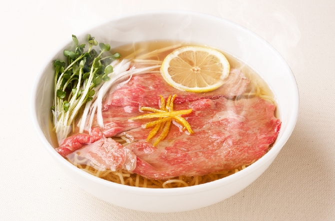 こんぶ、いりこ、宗田かつお節などを使用した秘伝比率の黄金出汁がベースの近江牛ラーメン「白」