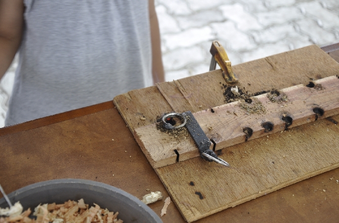 古代の火起しや実際に火を着けて石窯でピザ作りまでしてしまう。