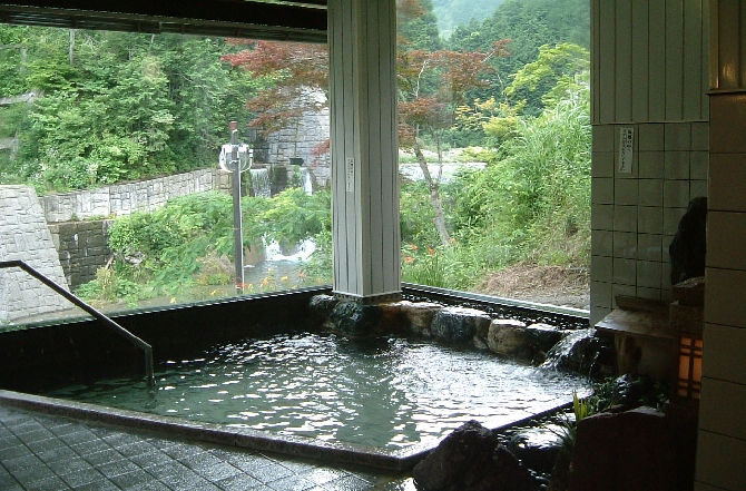 秋は紅葉、春夏は緑を眺めながら硫黄泉のお湯に浸かり、