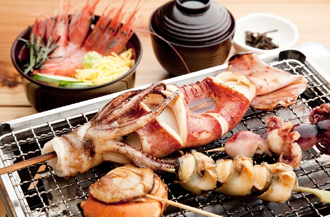 さらにホタテ、イカ、小ダコ、ツブ貝を豪快に焼いたものと、