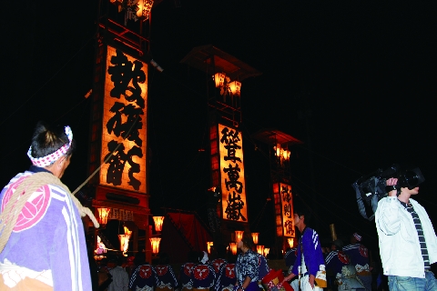夜の10時ごろ、大きなキリコが白山神社へ集結します。