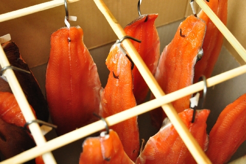一般的な熱燻法から1つ進んで、本格派の温燻法を体験し学びます。食材は、琵琶湖固有種のビワマスなど。