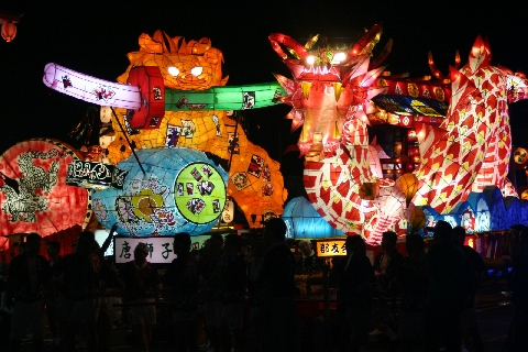 勇壮なあんどん山車が華麗な光と色彩の競演を繰り広げます。